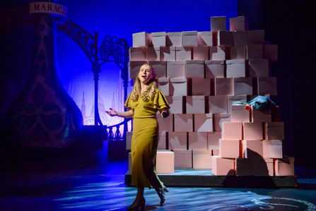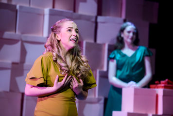 Two dresses created for the musical theatre production of She Loves Me - a mustard evening dress and a pink slip, both for the character Amalia Balash.